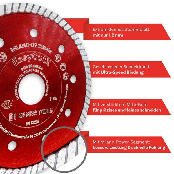 - Für präzisere Schnitte ohne Ausbrüche und sicherste Handhabung bei extremen Einsatz