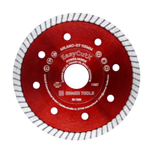 - Geschlossener Schneidrand für exakte Schnitte ohne Kantenausbrüchen speziell bei glasierten Fliesen
